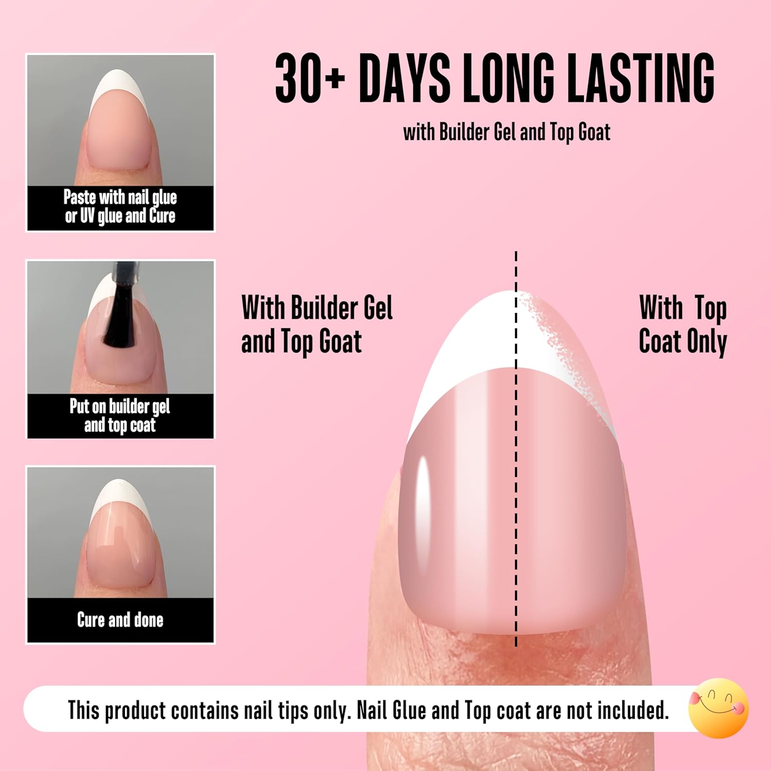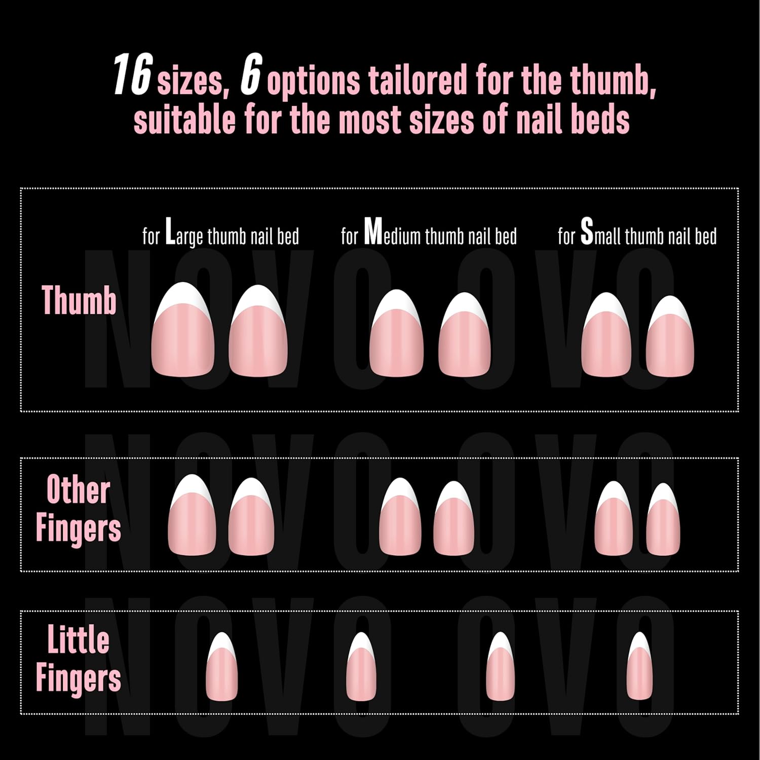 - GET A SIMPLE SHORT FRENCH TIP ALMOND NAIL MANICURE WITH JUST 3 STEPS: NOVO OVO pre-designed nails are here to make your manicure easier! We've already applied a tip primer and base coat on the soft gel nail tips. Simply stick them on your nails with UV glue or press on nail glue, then add a layer of builder gel and top coat. In just 15 minutes, you'll have stunning French Tips almond nails on your hand!