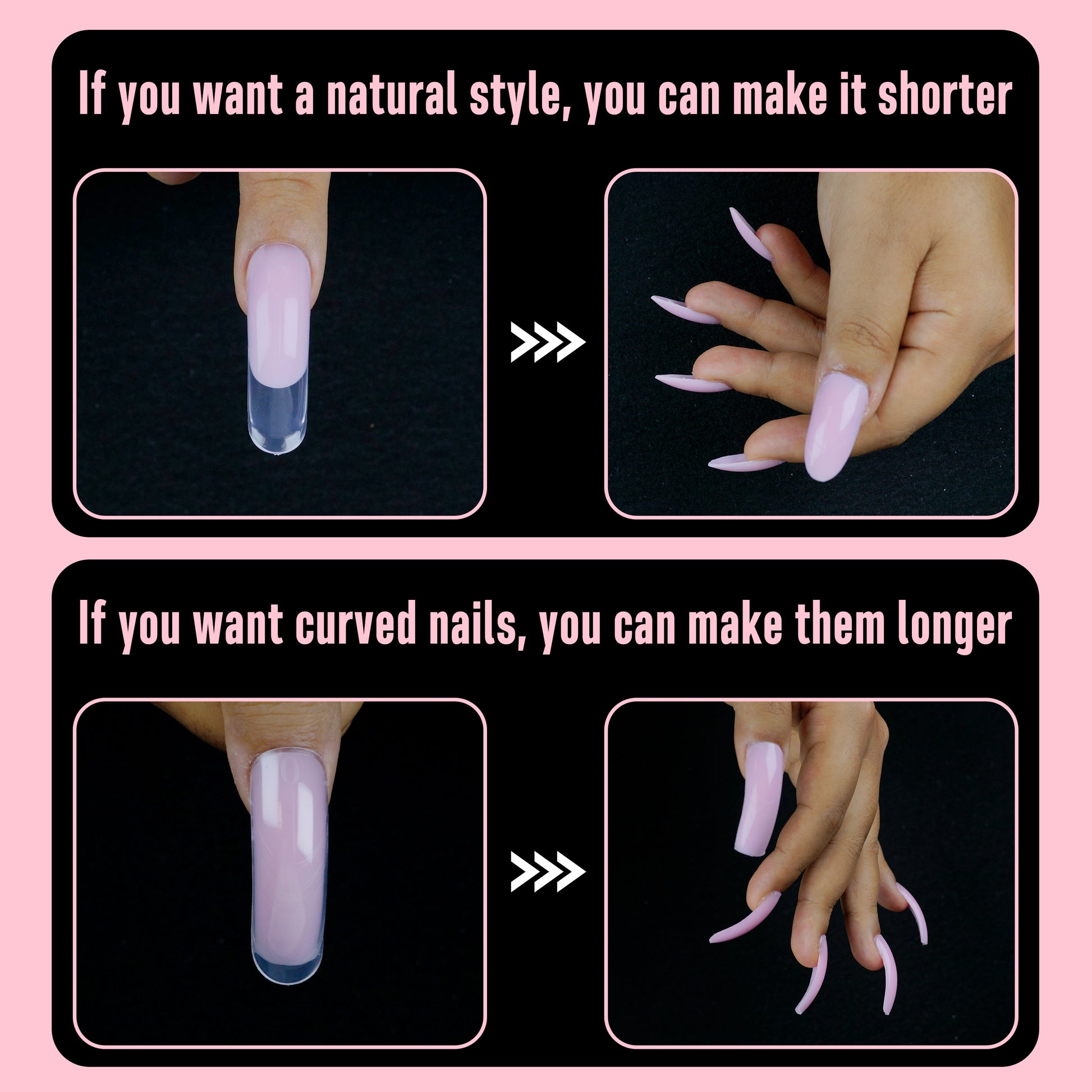 - WORLD FIRST CRUVED NAIL DUAL FORM FOR POLYGEL: After 9 styles nail tips ranging from full coverage to half cover and various shapes like square, stiletto, and almond oval, we are glad to release the revolutionary curved nail dual form for poly gel. Effortlessly create stunning curved nails by filling the forms with poly gel, harder gel or builder gel positioning them on your nail, curing, and simply popping them off for a flawless astonishing finish.