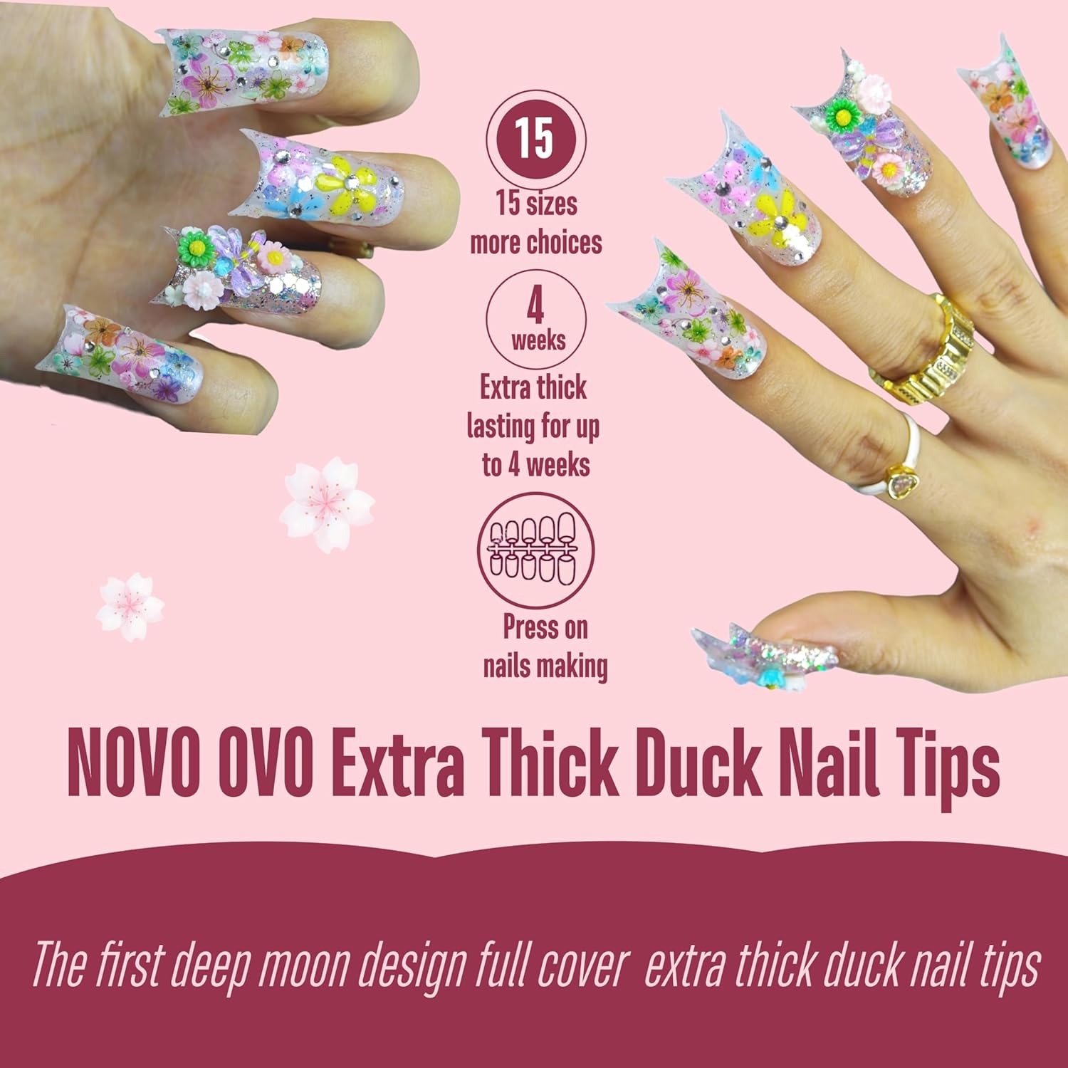 - WORLD FIRST MOON CURVE DUCK NAIL TIPS: after provided 8 kinds of different duck nail tips or dual forms, from half cover to full coverage, from short length to medium, long, XL. We designed this duck nail tips with MOON CURVE to eliminate the need for time-consuming filing, allowing you to easily create stunning designs. Whether you're a professional nail artist or a DIY enthusiast, this revolutionary product is sure to streamline your nail design process and enhance your creativity.