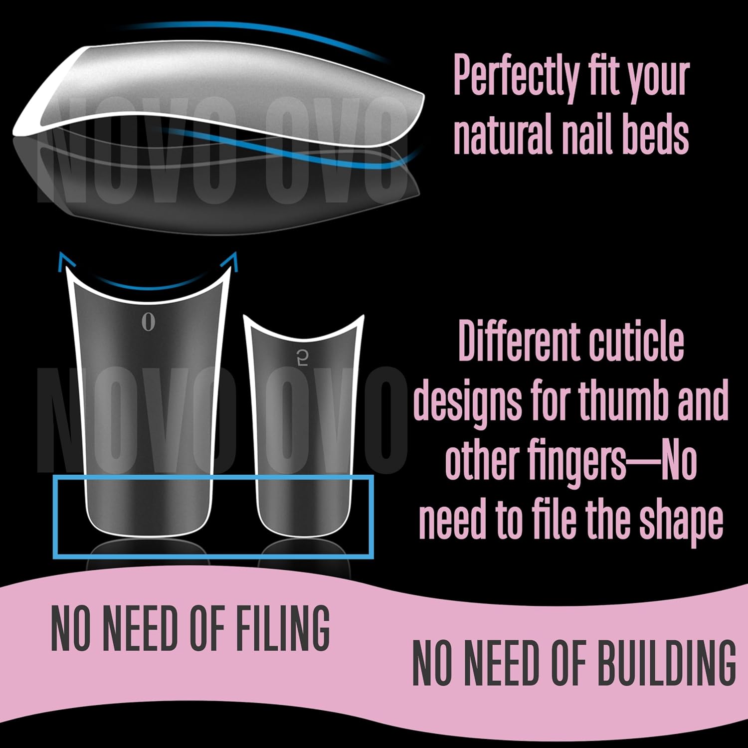 - PROFESSIONAL-GRADE RESULTS: Whether you’re a seasoned nail technician or a DIY enthusiast, the NOVO OVO Extra Thick Nail Tips are your ideal choice for achieving salon-quality results effortlessly. We offer Almond, Coffin, Oval, Square, Duck Feet, Curved Square, Curved Stiletto for manicures, and Tapered Square for pedicures, empowering you to create stunning nail enhancements with confidence and precision.