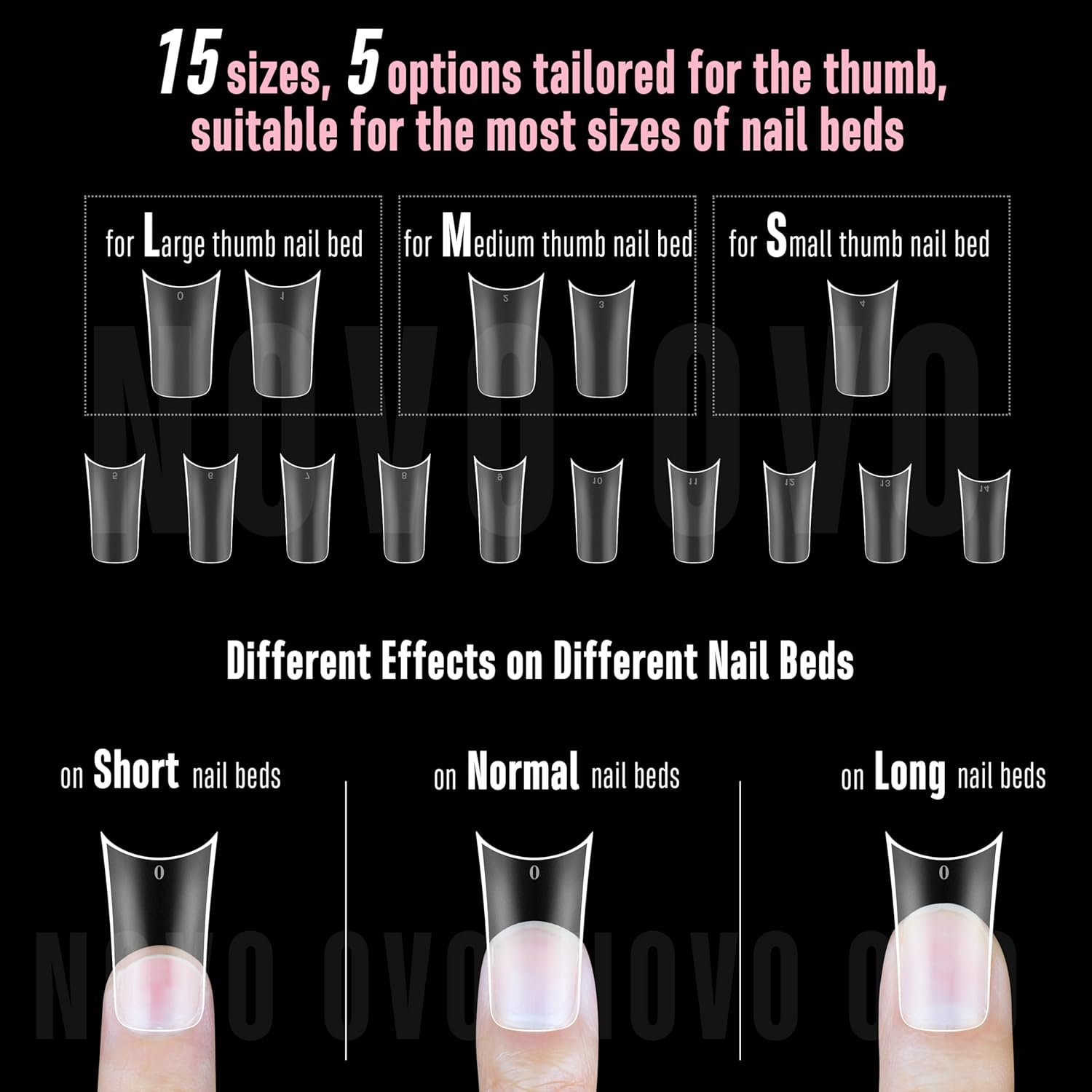 - VARIOUS SIZES OPTIONS FOR BEST FIT: Our nail tips come in 15 different sizes to cater to a variety of finger sizes, 5 choices for the thumb and especially friendly for those with wide or tiny nail beds. So, matter you have big or small size fingers, you can find the perfect fit in our tips. And it is easier for professional salons to create stunning and perfectly fitting manicures or apply press-on nails.