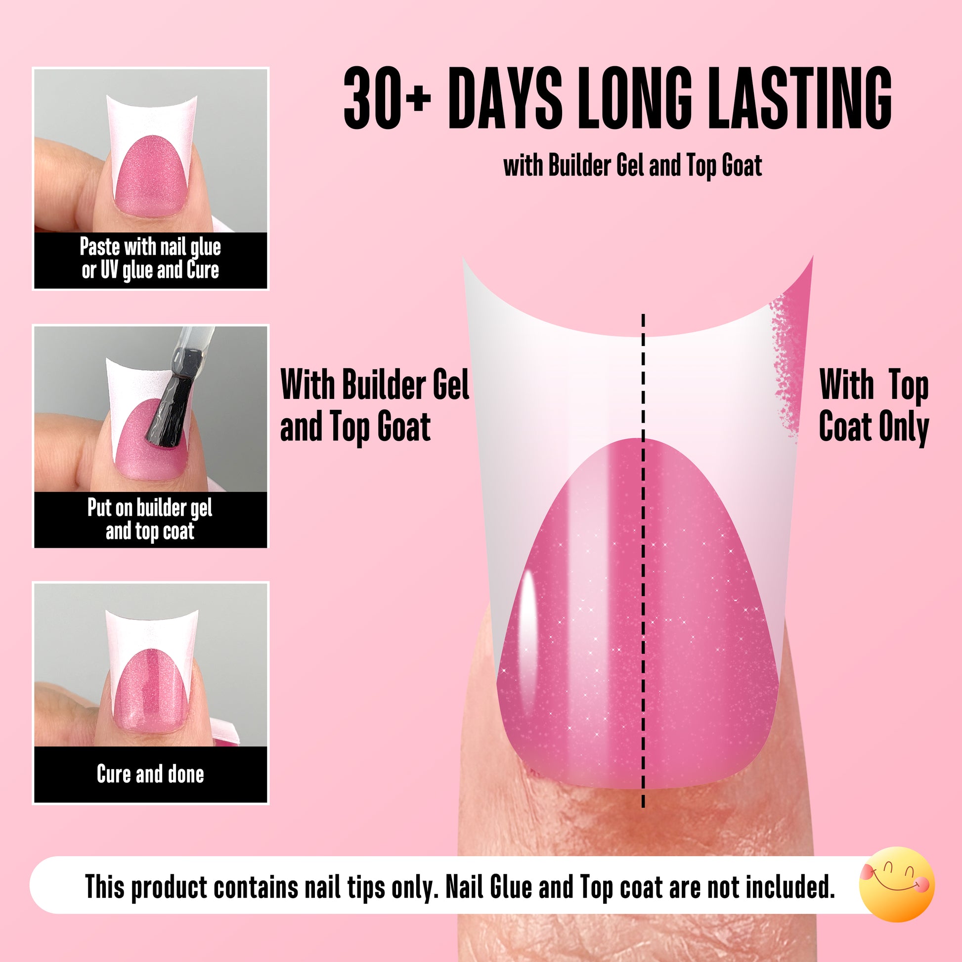 - DOUBLE-THICK NAIL TIPS MADE WITH SOFT GEL: By popular demand from our global customers, we proudly made our Premium Quality medium length nail tips featuring an extra-thick finish at the free edge. This innovative design ensures that these nail tips are 2-3 times sturdier than standard options, allowing you to save on builder gel costs.