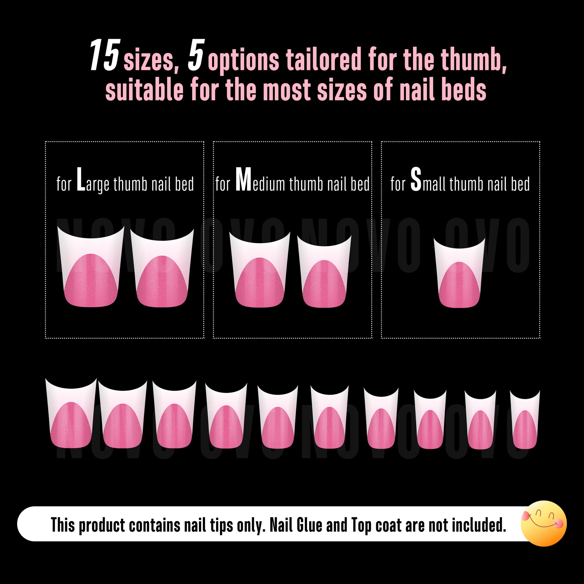- VARIOUS SIZES OPTIONS FOR BEST FIT: Our nail tips come in 15 different sizes to cater to a variety of finger sizes, 5 choices for the thumb and especially friendly for those with wide or tiny nail beds. So, no matter if you have big or small fingers, you can find the perfect fit in our tips. And it is easier for professional salons to create stunning and perfectly fitting manicures or apply press-on nails.