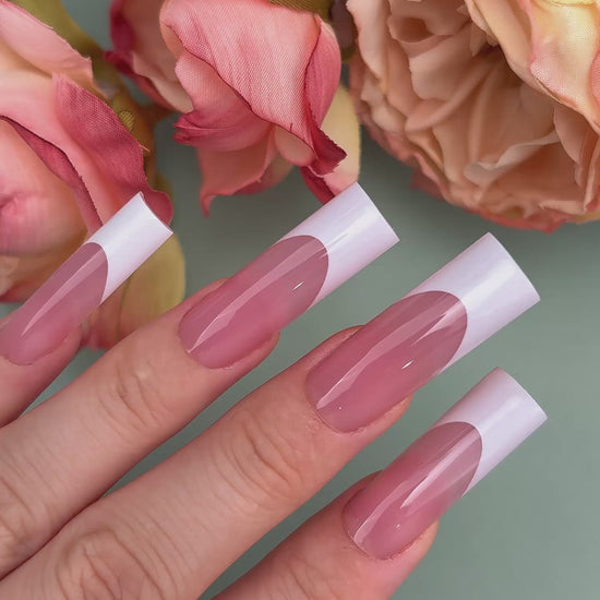 ACHIEVE A FLAWLESS WHITE FRENCH TIP LONG SHARP SQAURE NAIL MANICURE IN JUST 3 STEPS: Experience the ease of manicure with NOVO OVO ’s pre-designed FRENCH TIP nails! We’ve prepped our soft gel nail tips with a primer and base coat with the pre-designed pattern, so all you need to do is apply them to your nails using UV gel or adhesive. Finish off with a layer of builder gel and a top coat. In just 15 minutes, you'll flaunt fabulous Long sharp square nails that are sure to turn heads!