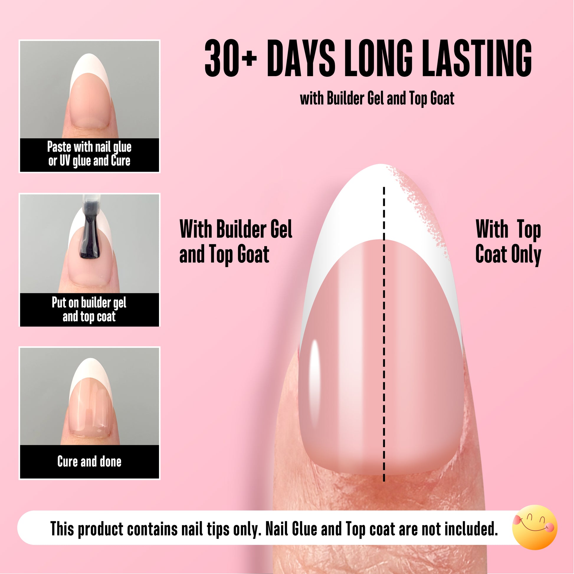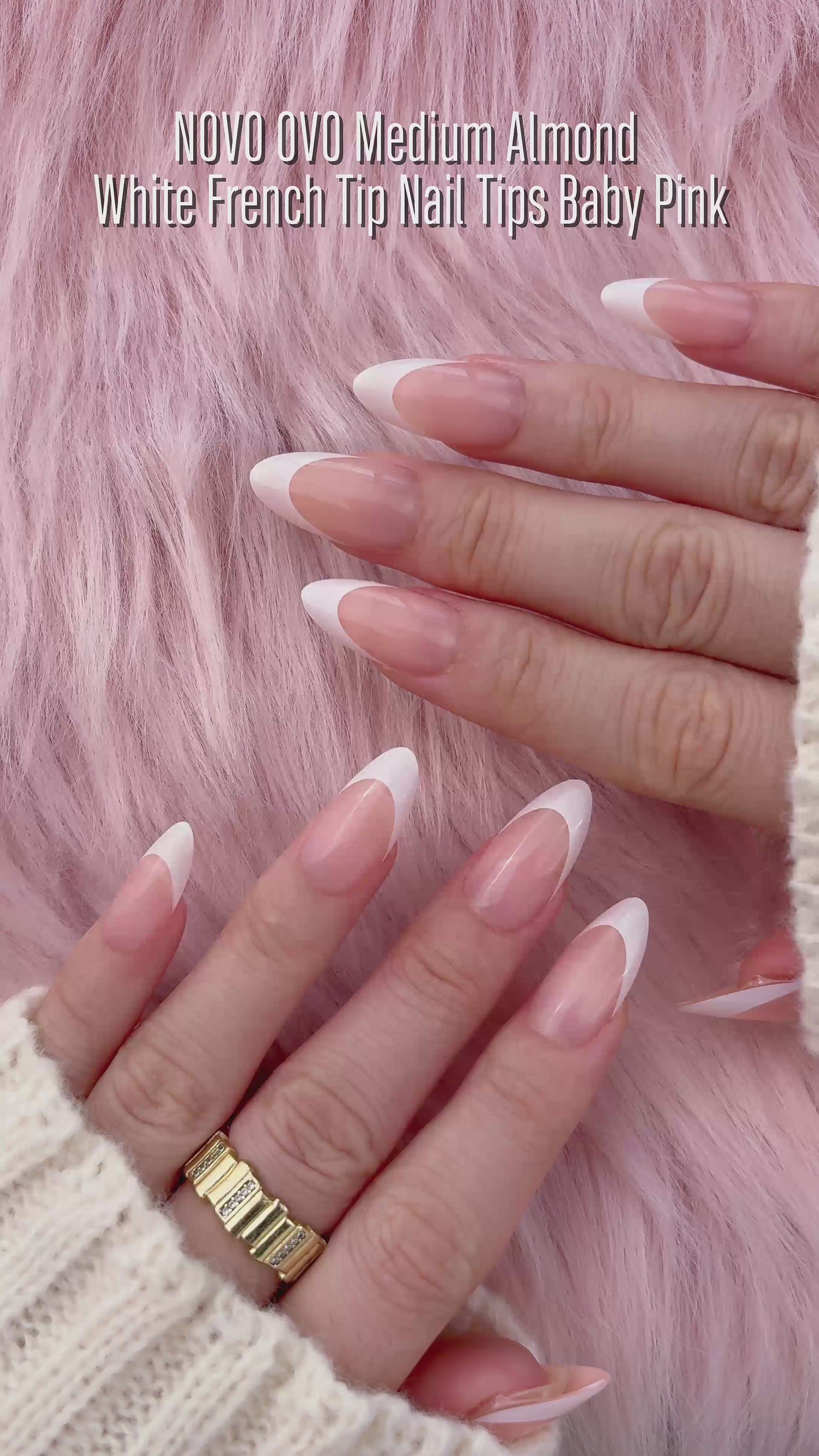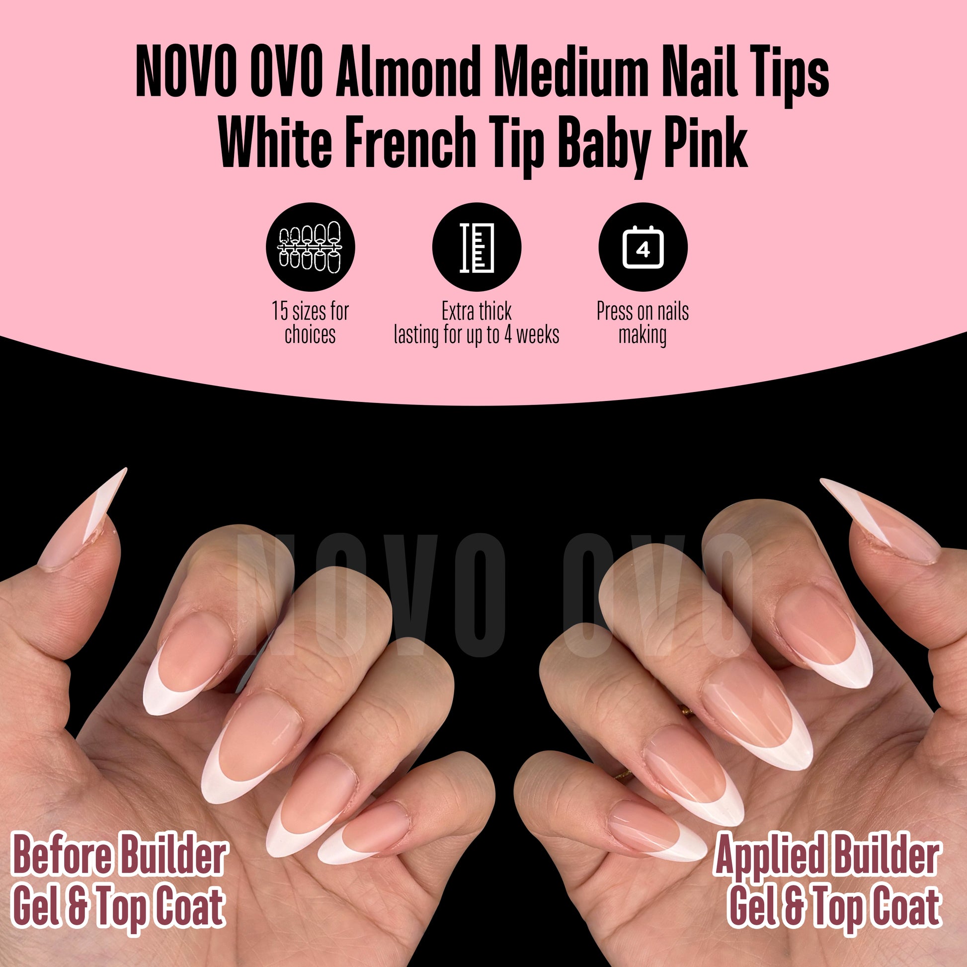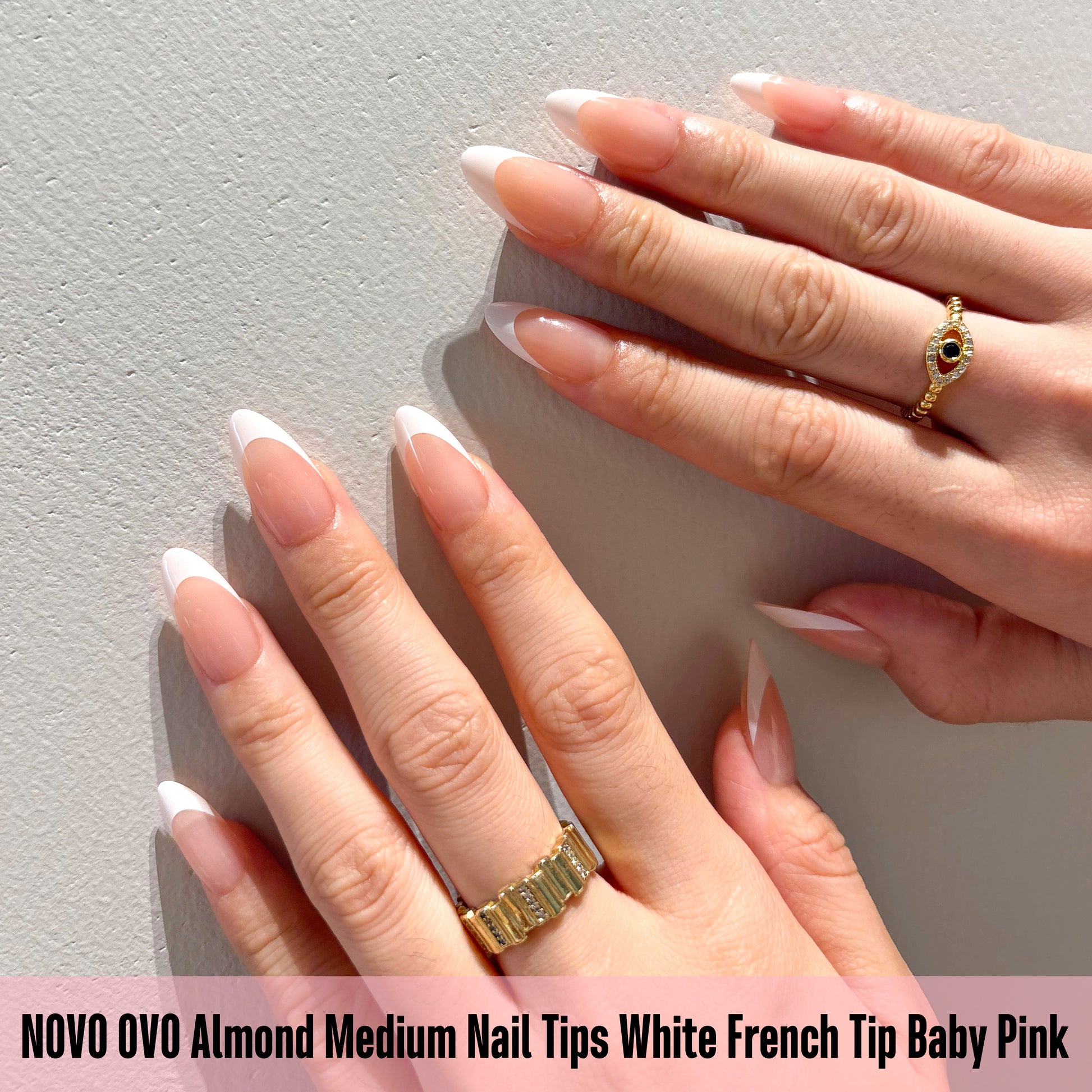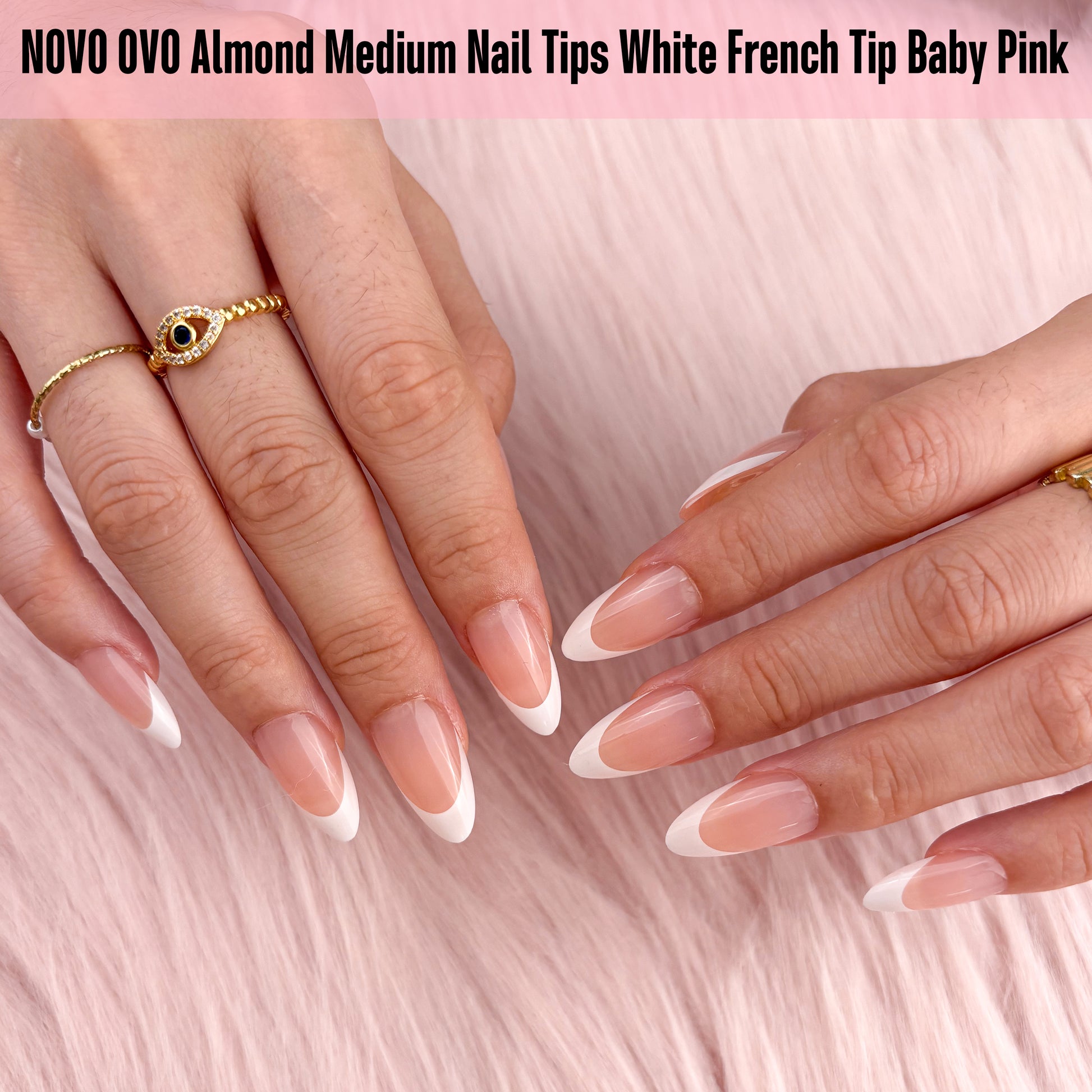 - GET A SIMPLE FRENCH TIP ALMOND NAIL MANICURE WITH JUST 3 STEPS: NOVO OVO pre-designed nails are here to make your manicure easier! We've already applied a tip primer and base coat on the soft gel nail tips. Simply stick them on your nails with UV glue or press on nail glue, then add a layer of builder gel and top coat. In just 15 minutes, you'll have stunning French Tips almond nails on your hand!