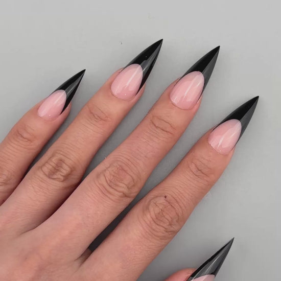 Medium or Long Black French Tip Sharp Stiletto Nail Tips Baby Pink