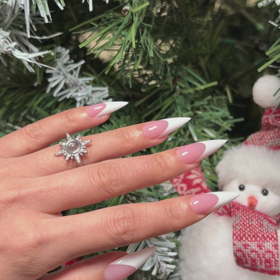 Medium or Long White French Tip Sharp Stiletto Nail Tips Berry Pink