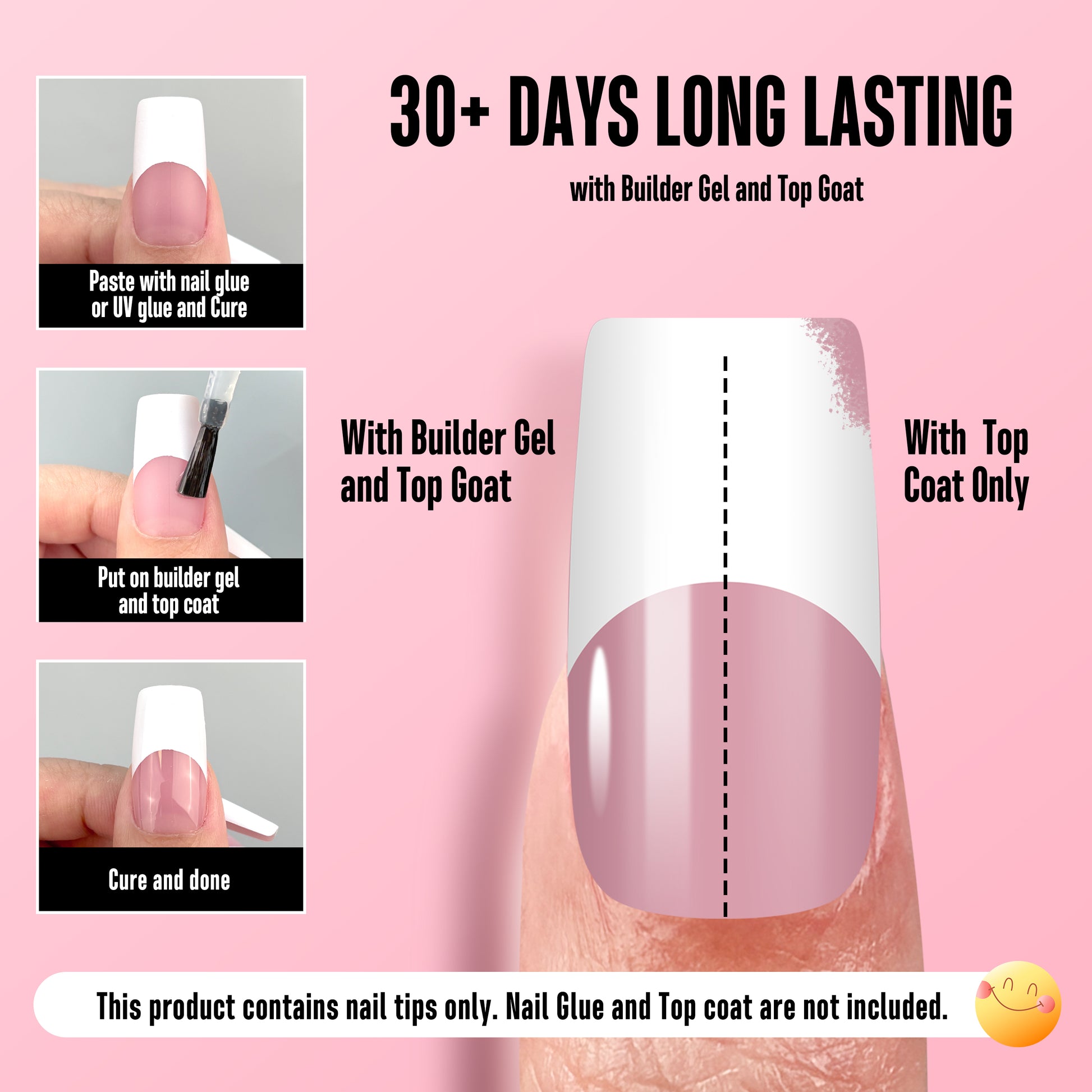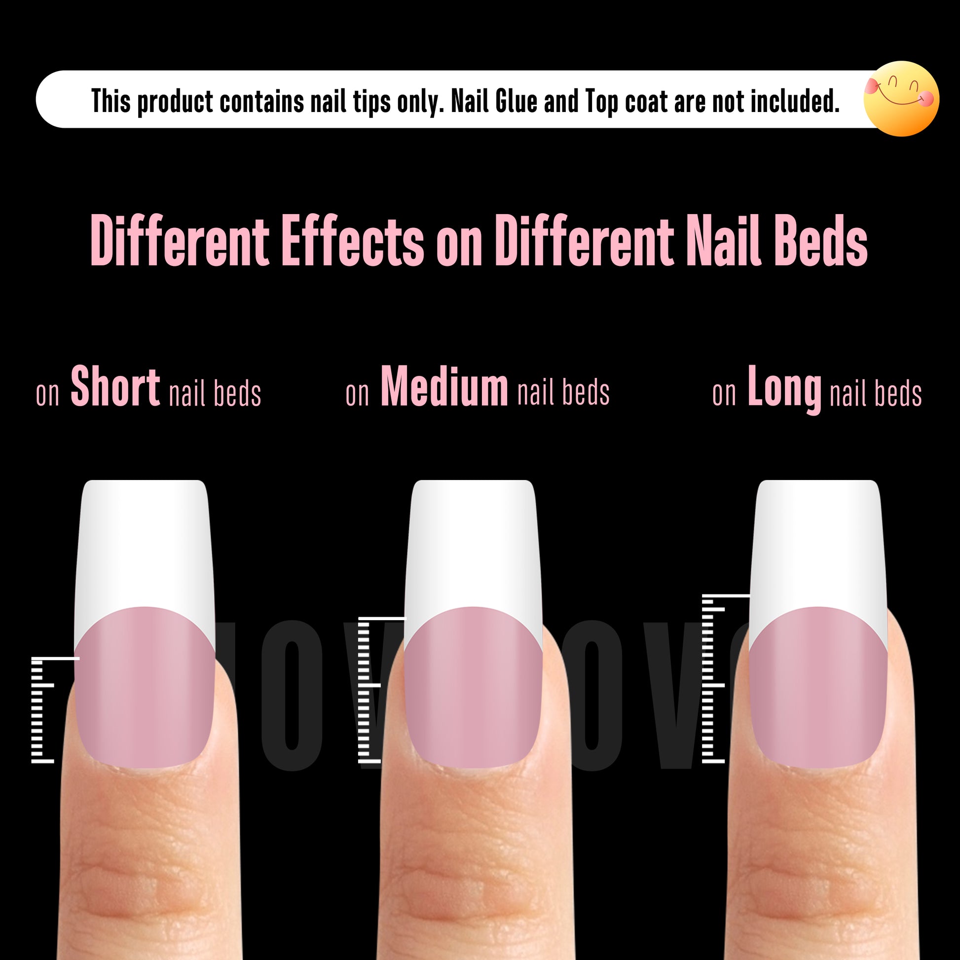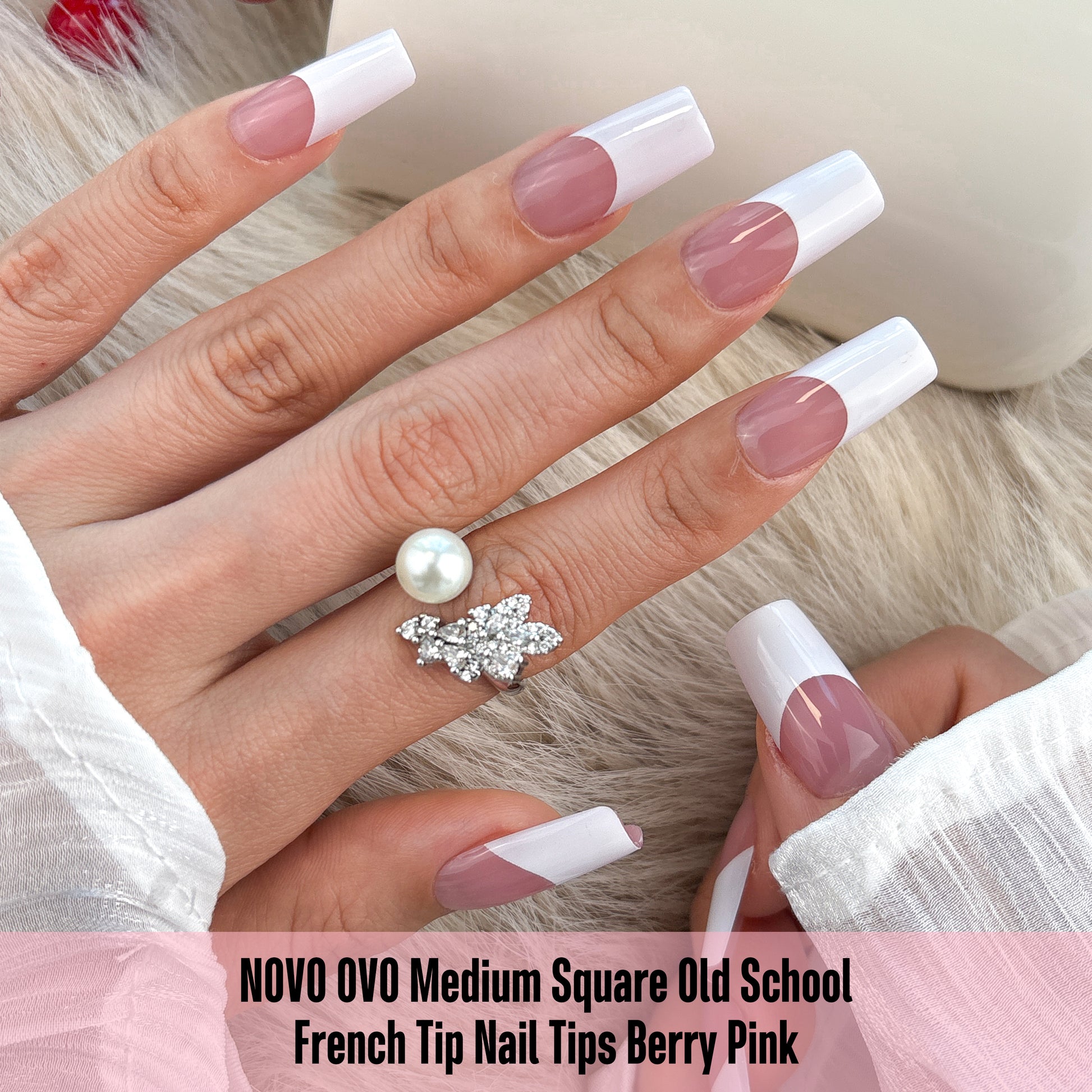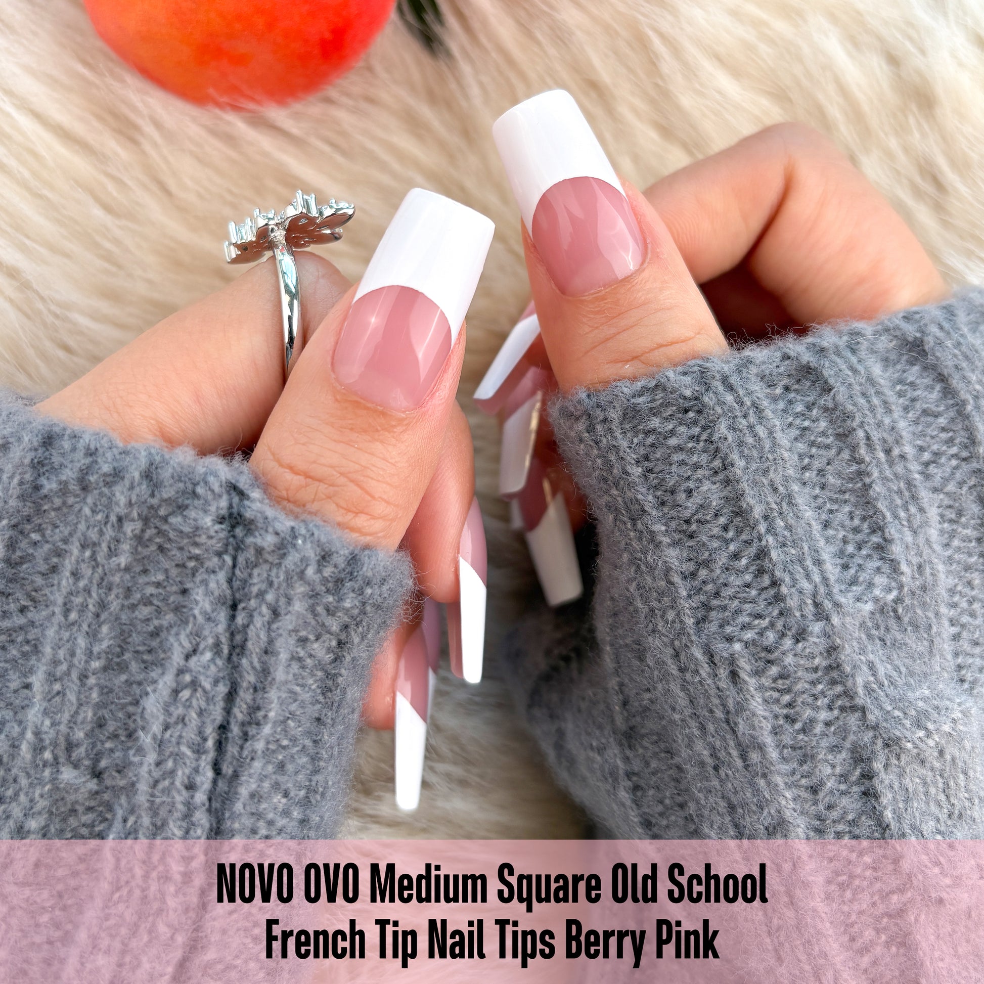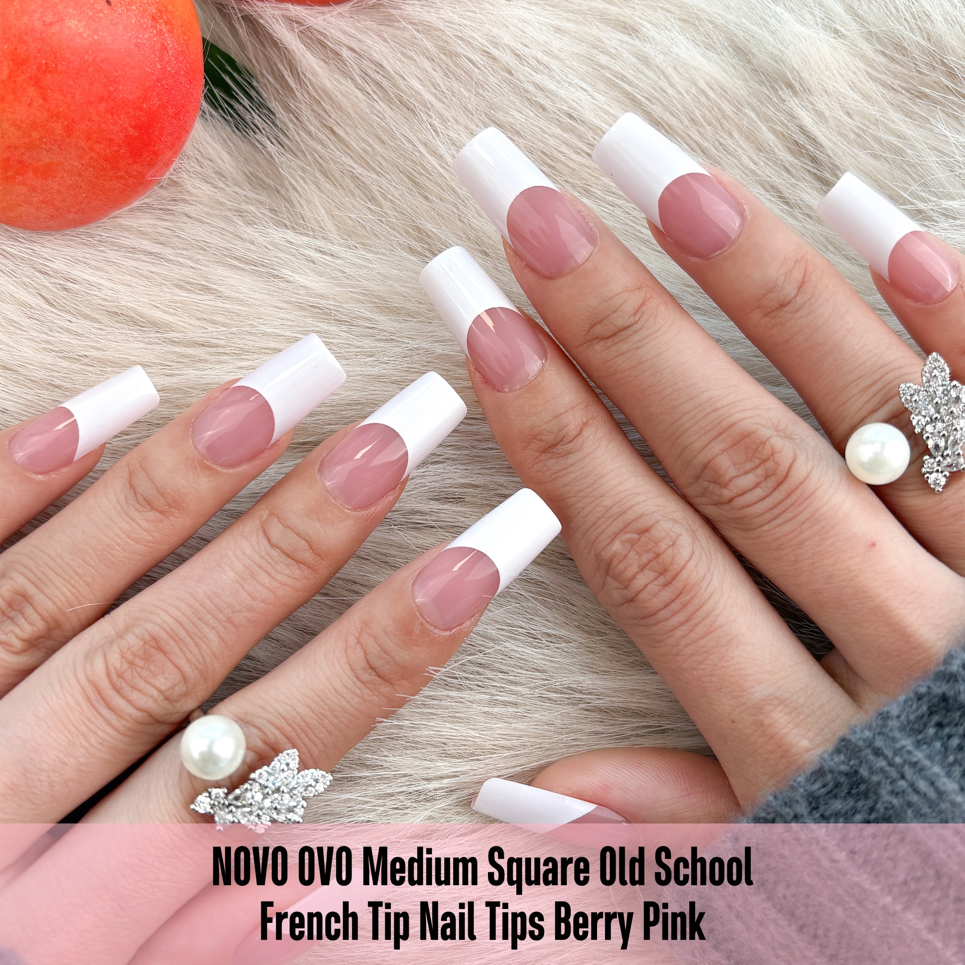 - GET A SIMPLE WIDE FRENCH TIP SQUARE NAIL MANICURE WITH JUST 3 STEPS: NOVO OVO pre-designed nails are here to make your manicure easier! We've already applied a tip primer and base coat on the soft gel nail tips. Simply stick them on your nails with UV glue or press on nail glue, then add a layer of builder gel and top coat. In just 15 minutes, you'll have stunning Old School French Tips square nails on your hand!