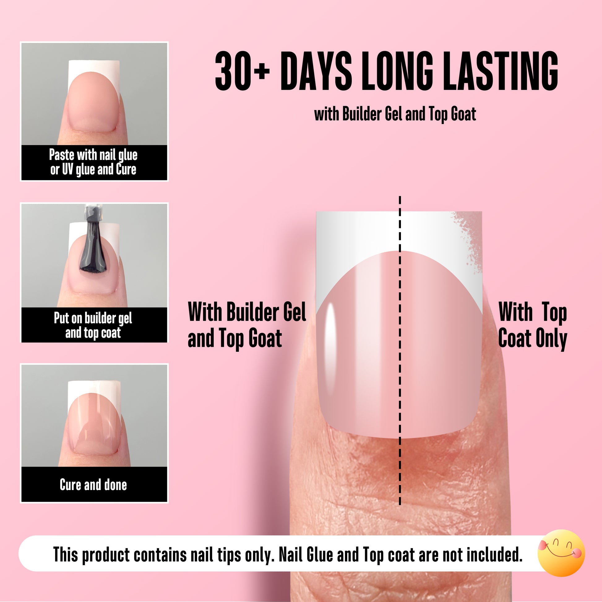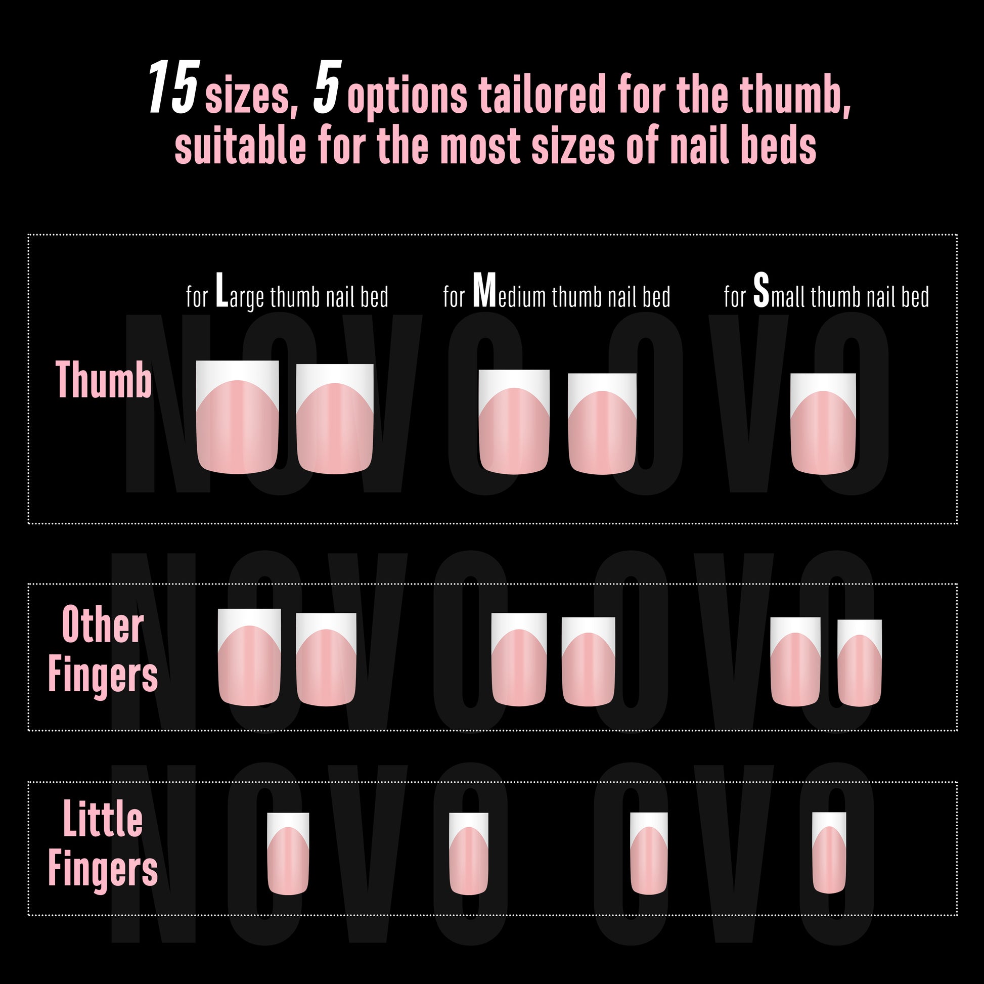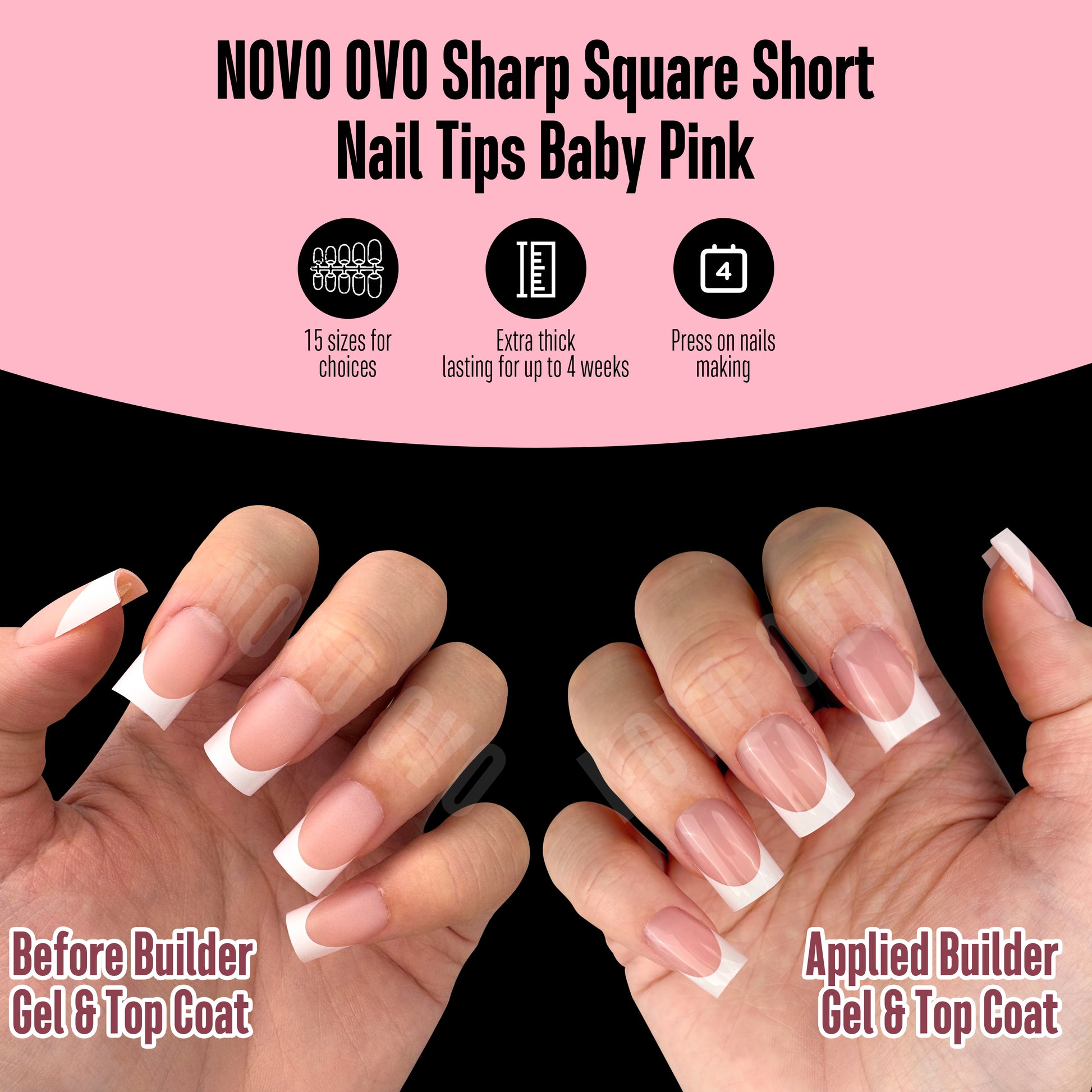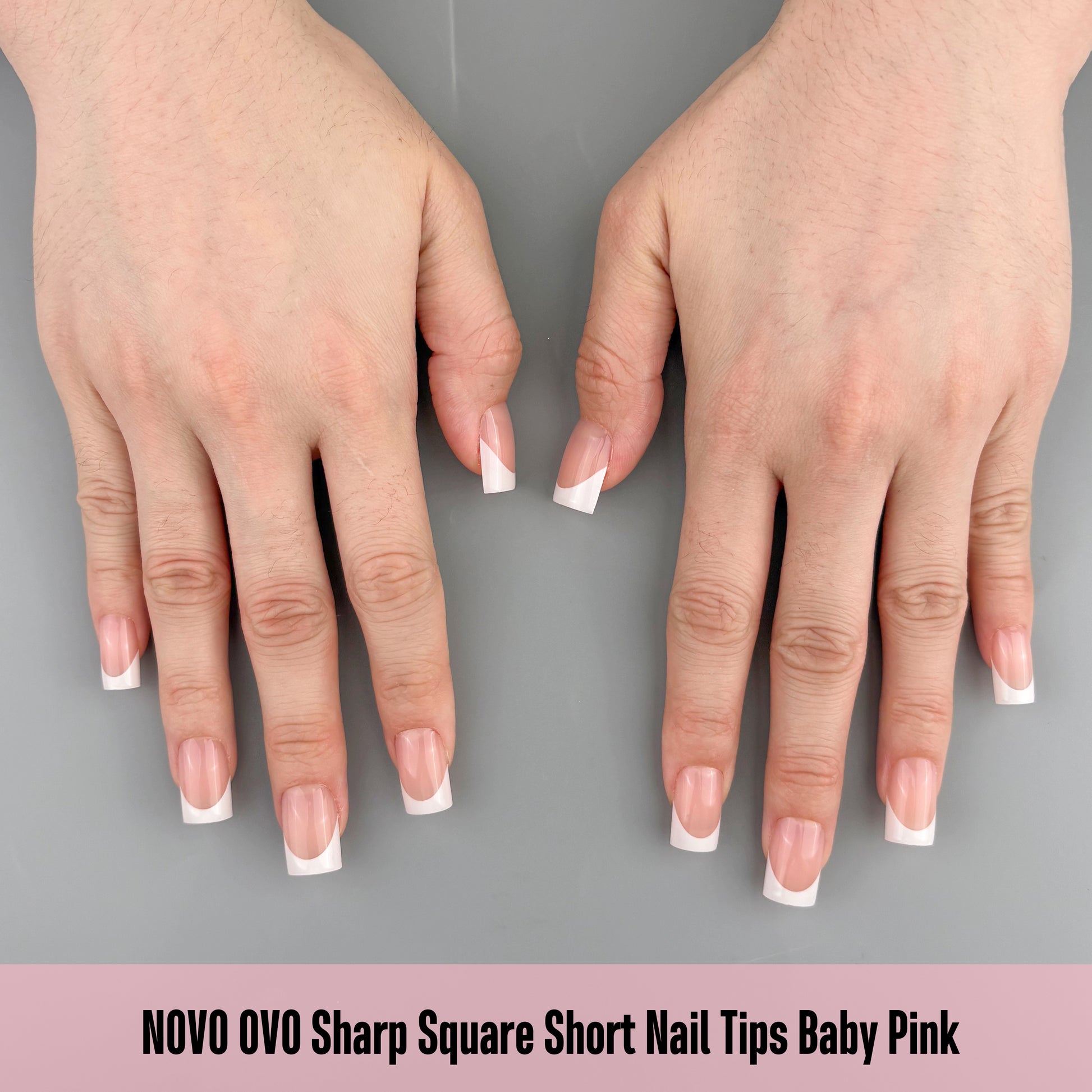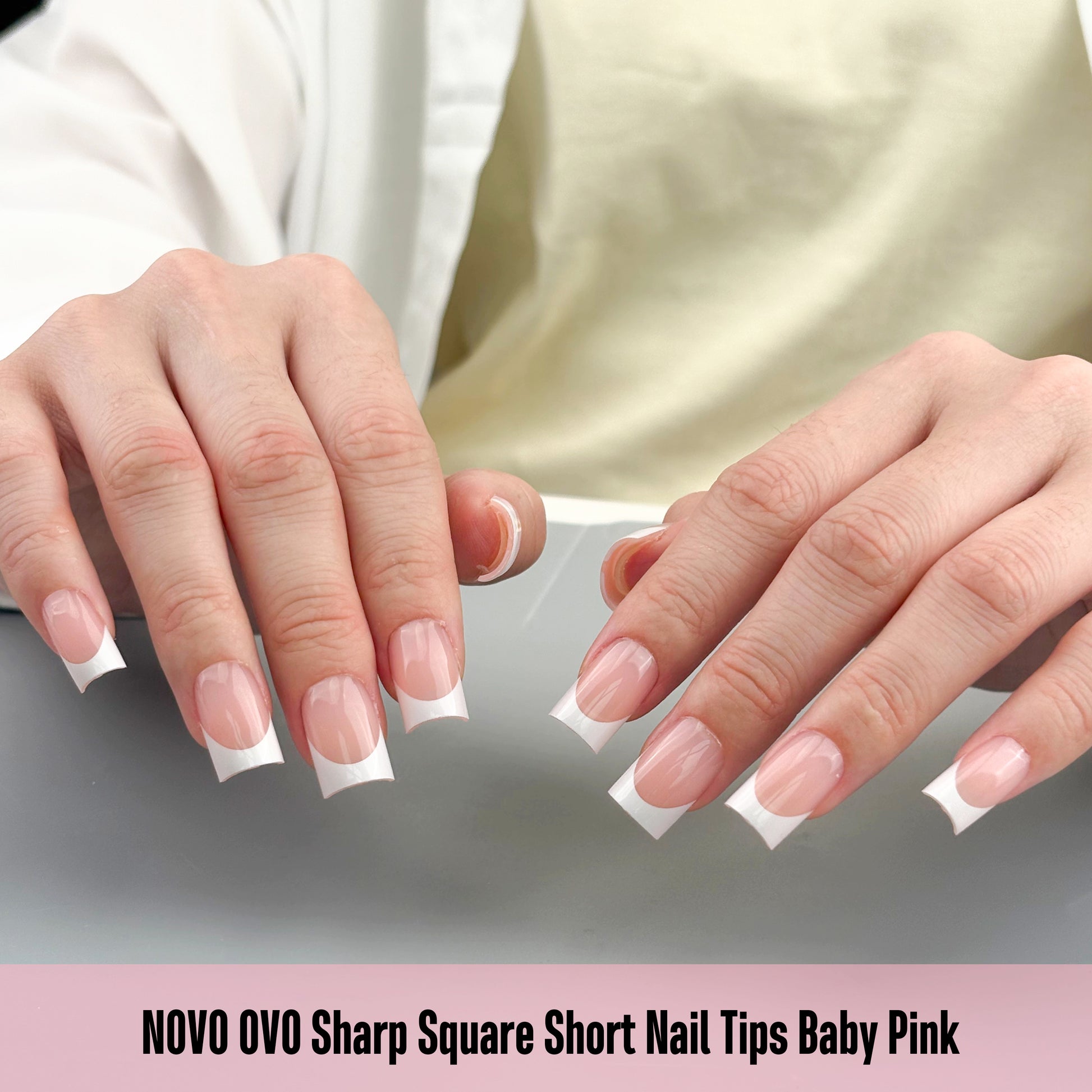 - ACHIEVE A FLAWLESS WHITE FRENCH TIP SHORT SHARP SQAURE NAIL MANICURE IN JUST 3 STEPS: Experience the ease of manicure with NOVO OVO ’s pre-designed FRENCH TIP nails! We’ve prepped our soft gel nail tips with a primer and base coat with the pre-designed pattern, so all you need to do is apply them to your nails using UV gel or adhesive. Finish off with a layer of builder gel and a top coat. In just 15 minutes, you'll flaunt fabulous curved nails that are sure to turn heads!
