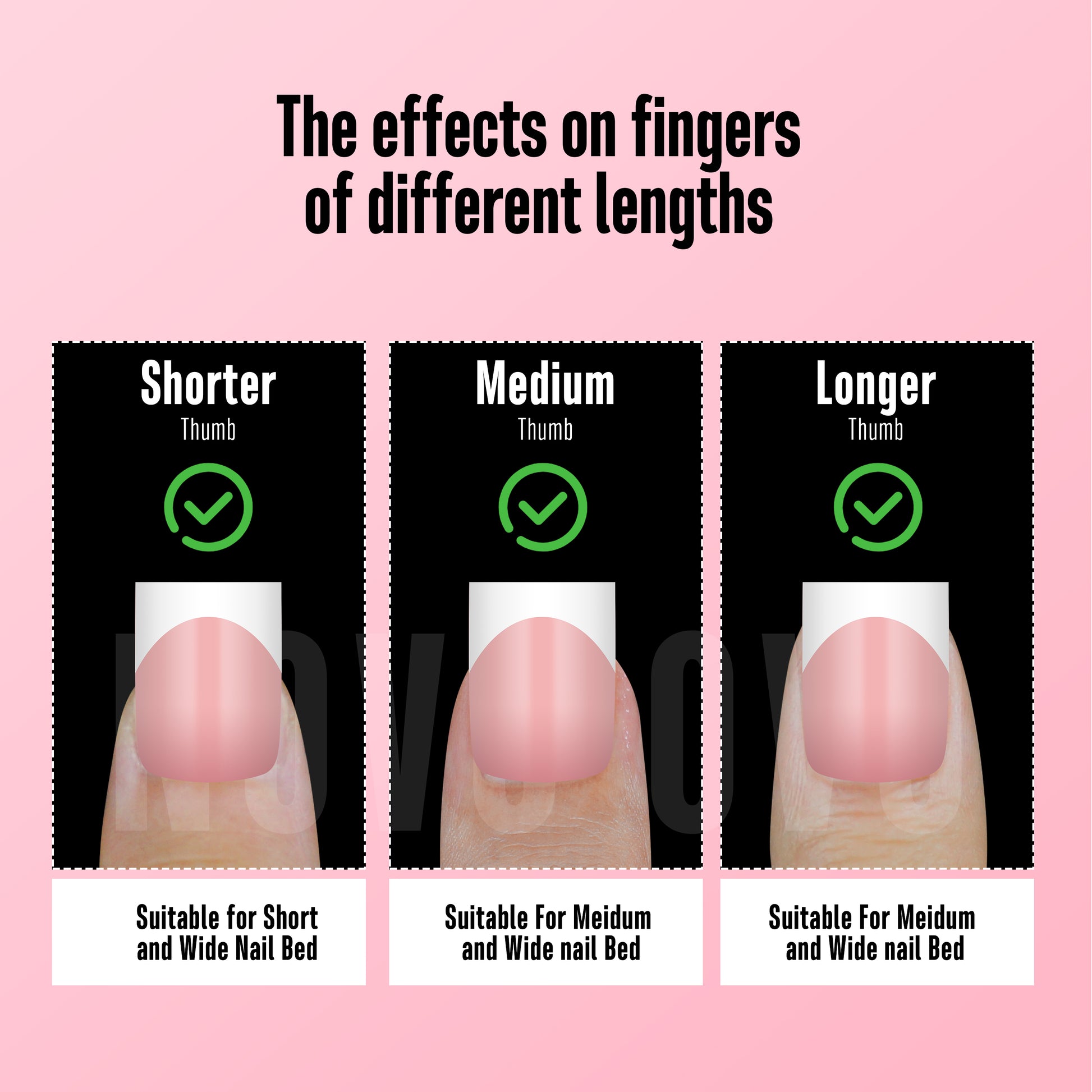 - EXTENSIVE SIZE VARIETY: Our nail tips come in 15 distinct sizes, thoughtfully crafted to fit a spectrum of nail beds, whether broad or petite. For the cuticle part, we provide a square shape for the thumbs and a rounded design for the rest, eliminating the hassle of reshaping and giving you more time to focus on your artistry.