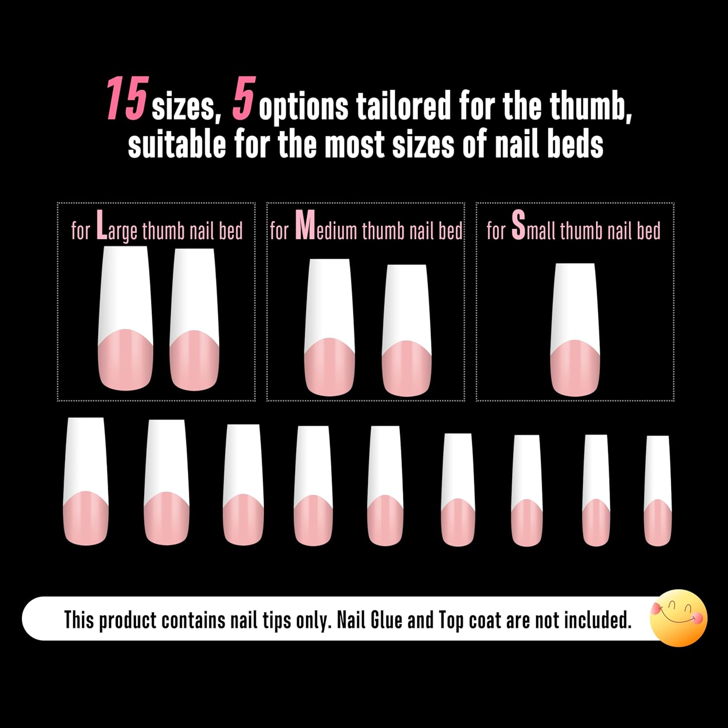 - EXTENSIVE SIZE VARIETY: Our nail tips come in 15 distinct sizes, thoughtfully crafted to fit a spectrum of nail beds, whether broad or petite. For the cuticle part, we provide a square shape for the thumbs and a rounded design for the rest, eliminating the hassle of reshaping and giving you more time to focus on your artistry.