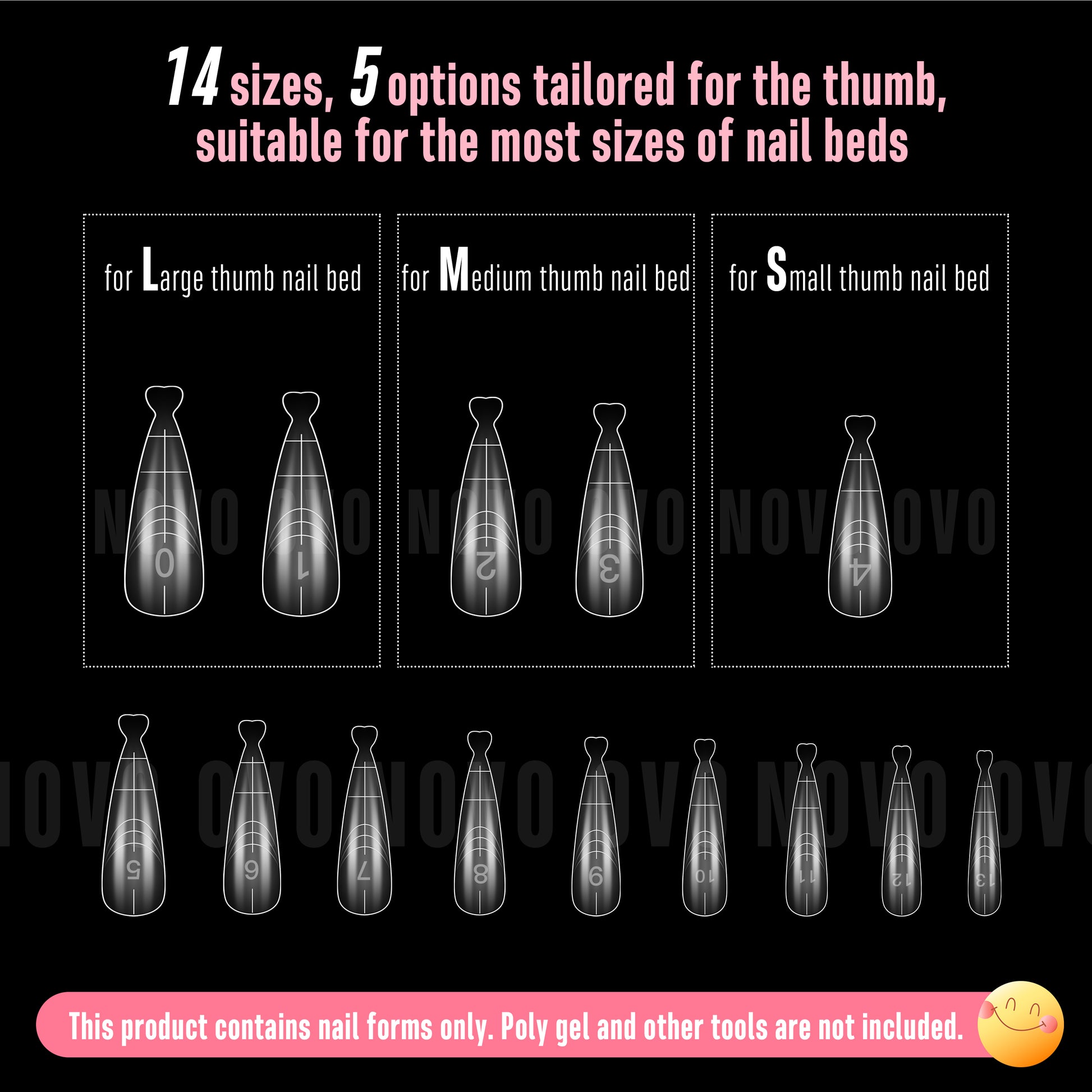 NOVO OVO Medium/Long Stiletto Pointed Nail Dual Forms for Polygel Extension, Reusable Full Cover Acrylic / Builder / Hard Gel Poly Gel Molds of Manicure Art for Salon DIY x 14 sizes 280 Pcs