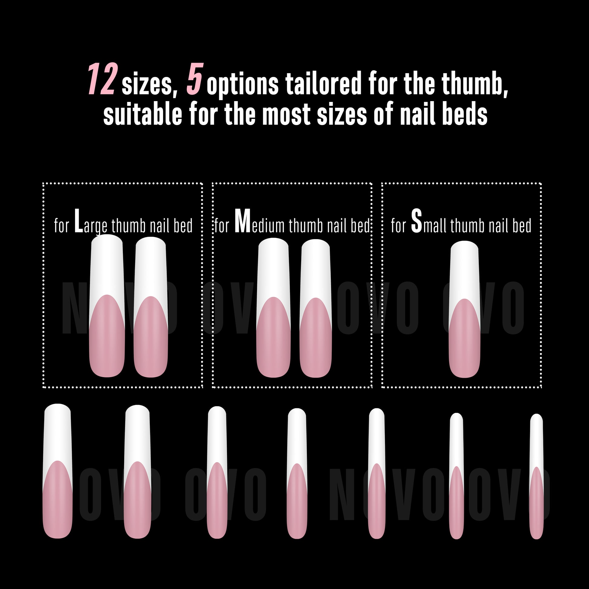- VARIOUS SIZE OPTIONS: Our nail tips come in 12 different sizes, catering to those with wide and big nail beds as well as those with smaller fingers. The pre-shaped full coverage dynamic design makes it a breeze for professional salons, DIY users, and starters to create stunning manicures or press-on nails.