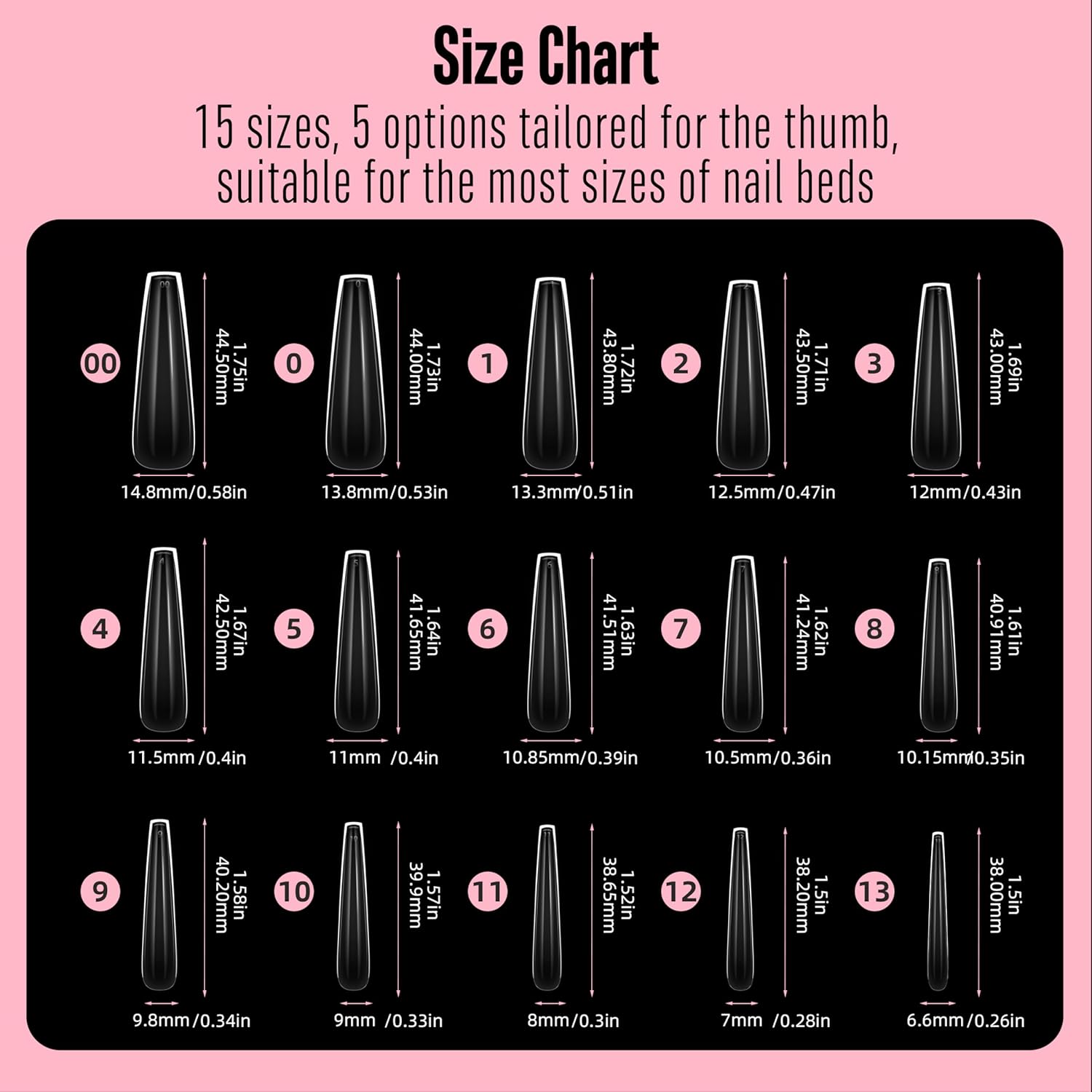 - VERSATILE XXL LENGTH FOR ALL USERS: Our nail tips feature an astonishing length of 43mm (1.69 inches), which some people also call it as L or XXL, making them suitable for professional salons or home users. You can adapt the length easily; simply trim them to your desired size using clippers without compromising their original shape. Whether you prefer long, medium, or short styles, these tips are designed to meet your specific needs effortlessly.